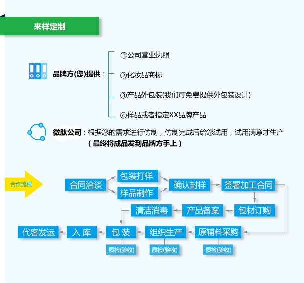 主營(yíng)業(yè)務(wù) / 專業(yè)線化妝品加工 / 二類械字產(chǎn)品代加工 / 消字號(hào)產(chǎn)品OEM / 各種面膜代加工